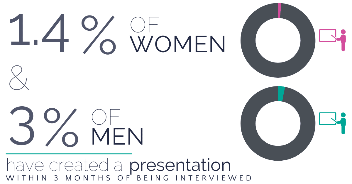 7. 1.4% of women and 3% of men created a presentation within 3 months of being interviewed.