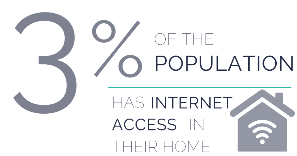 4. 3% of the population has internet access in their home – in some regions that number is zero.