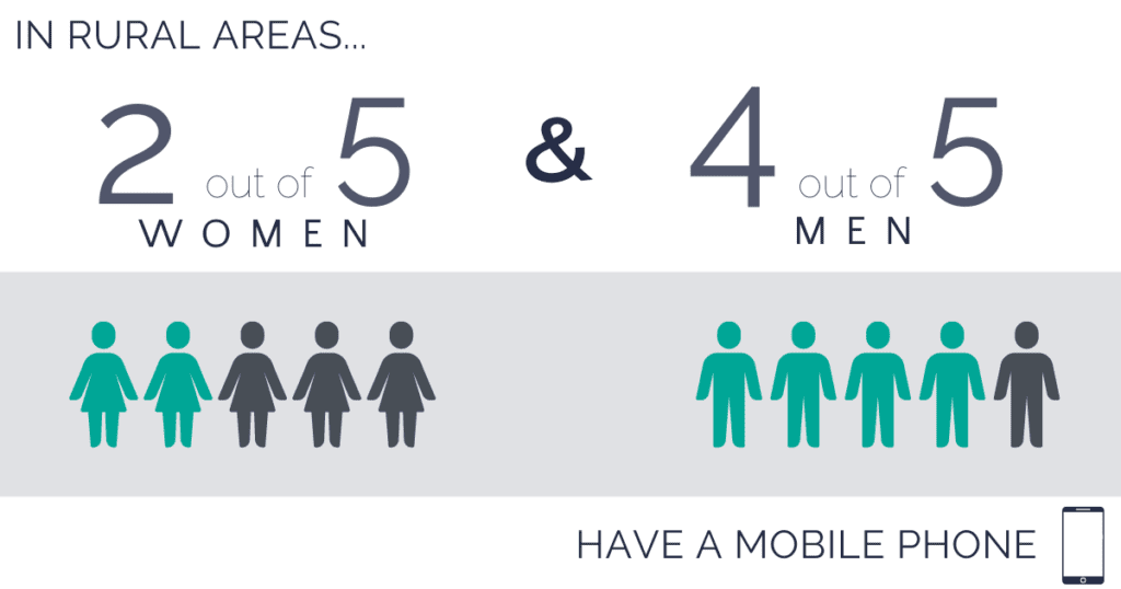 2. 2 out of 5 women have a mobile phone and 4 out of 5 men have a mobile phone.