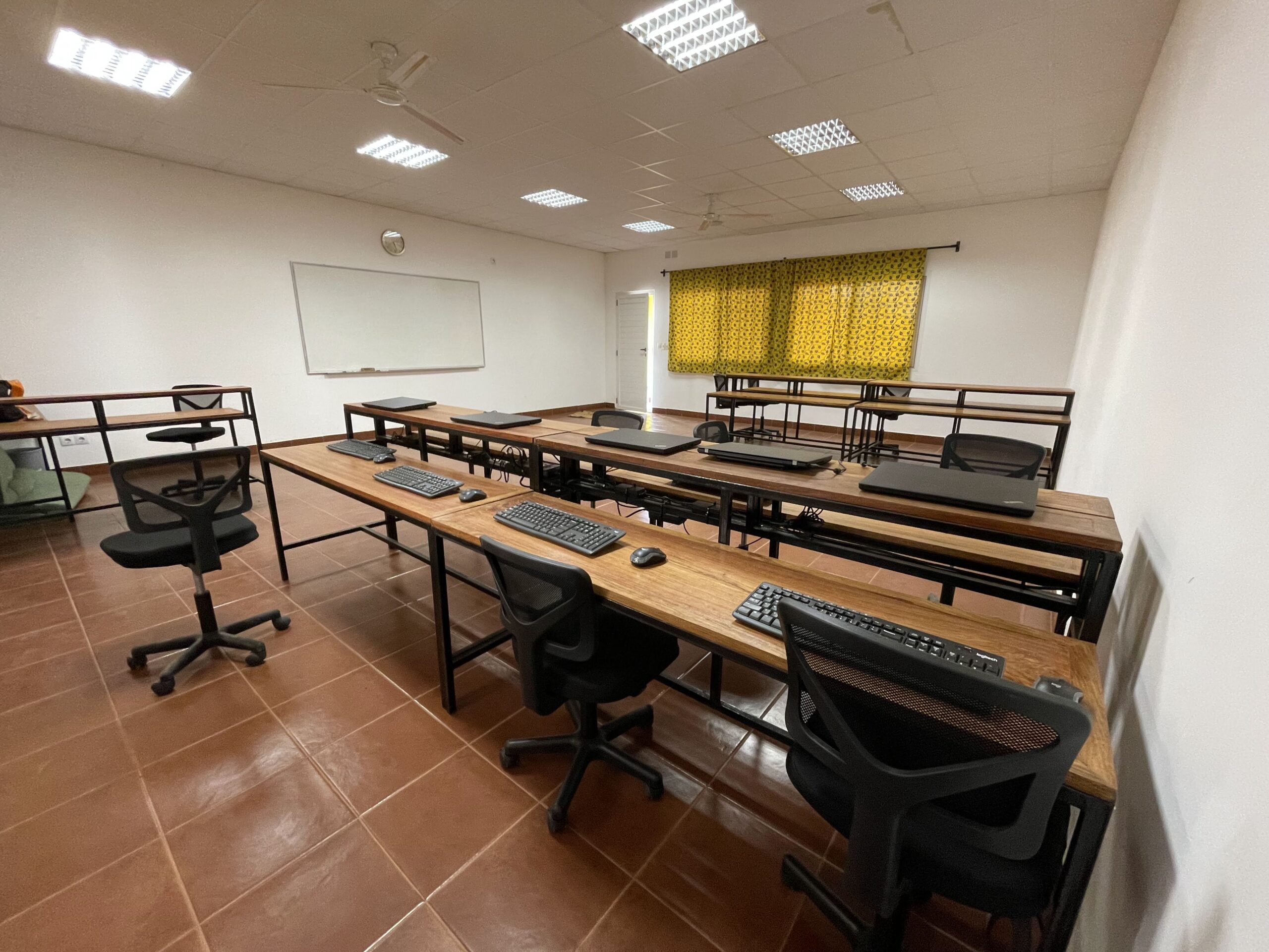 Recently, our students built desks that are used at our flagship campus in the capital, Bissau. (See photo above).