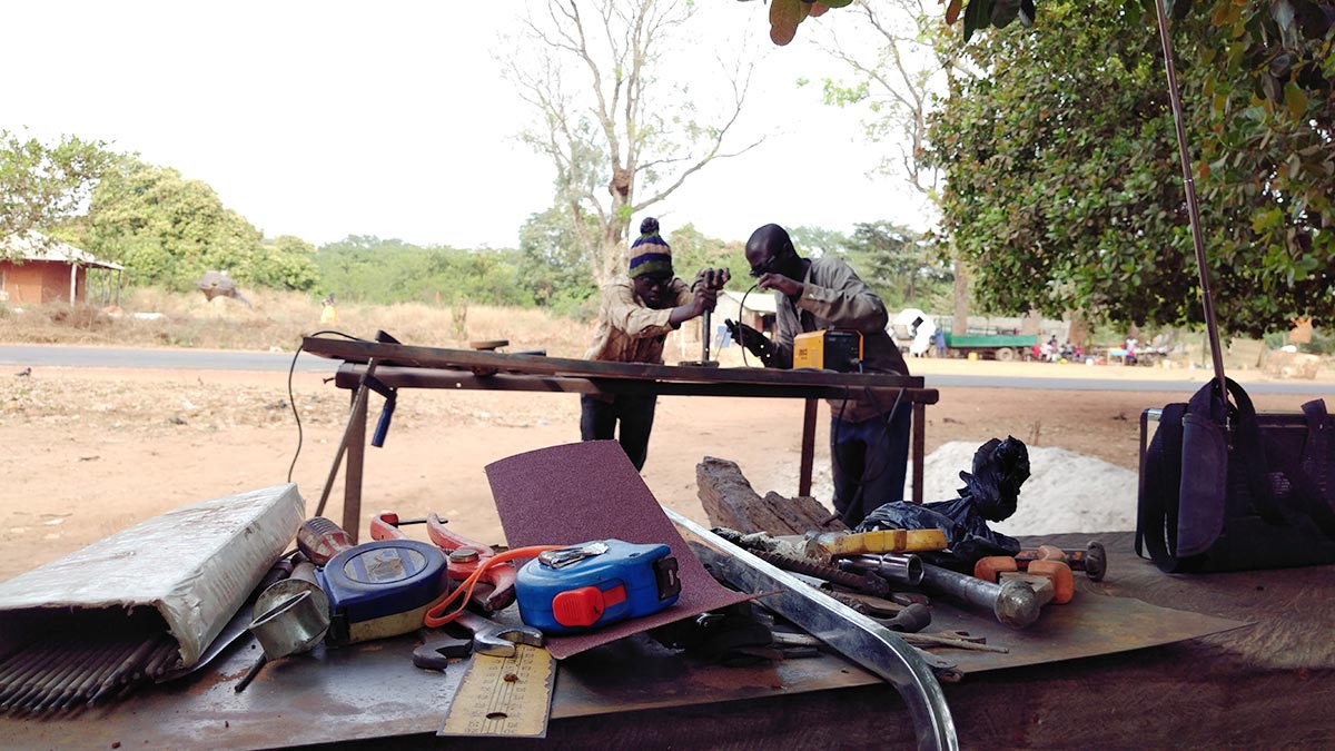 So like many young people desperate for a job, Papa moved to the capital, Bissau, where food and rent are more expensive, but there’s a better chance of employment. He connected with a friend who had a small outdoor welding workshop. For the next three years, Papa welded doors, windows, gates and anything else that customers brought to him.