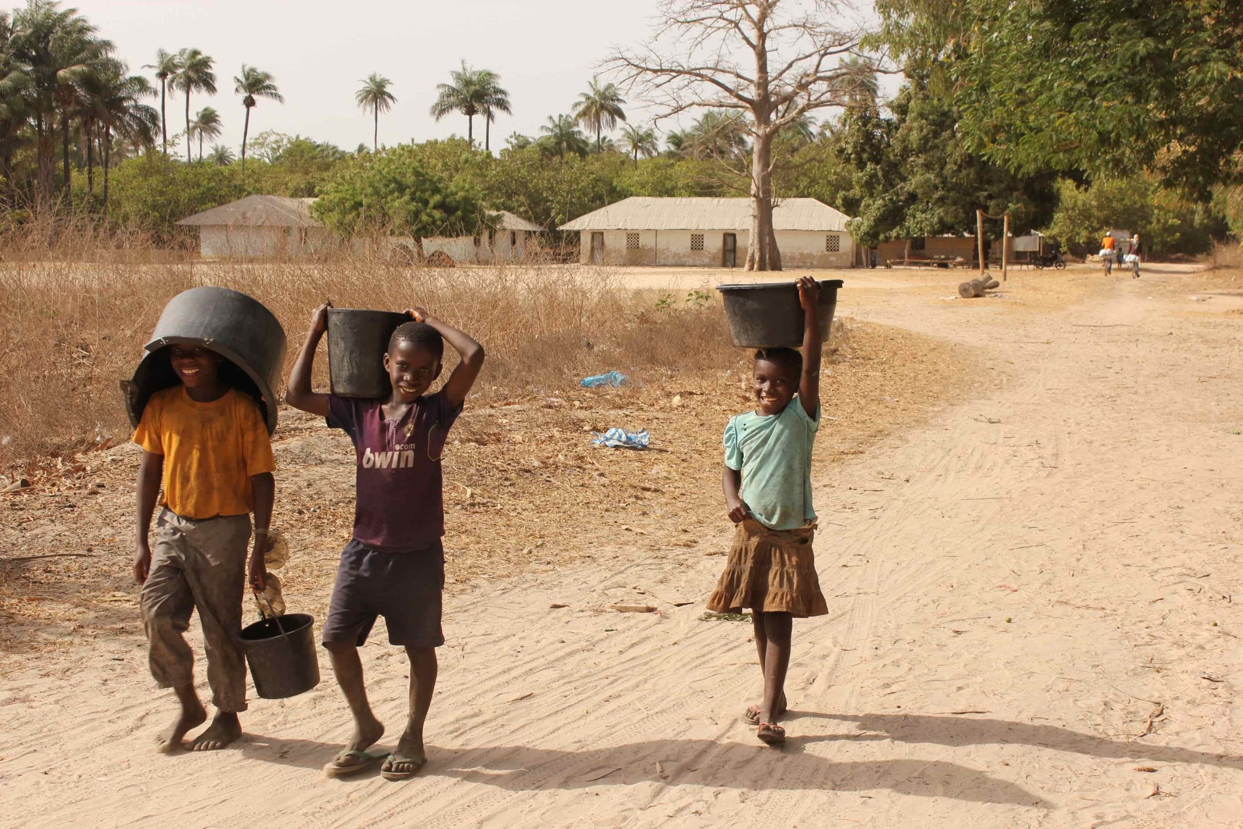 In the states, kids get sweaty faces running around grassy city parks. In Guinea-Bissau, kids get sweaty faces hauling buckets of water from community wells to their homes.