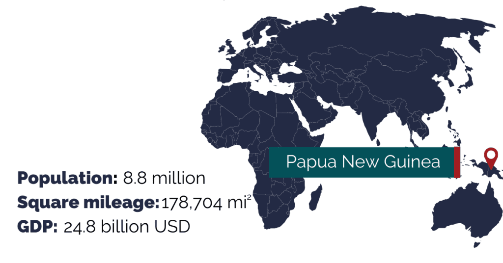 Papua New Guinea is a bit of a wildcard. While the other “Guinea” countries are in Africa, Papua New Guinea is located in the southwestern Pacific Ocean, just north of Australia.